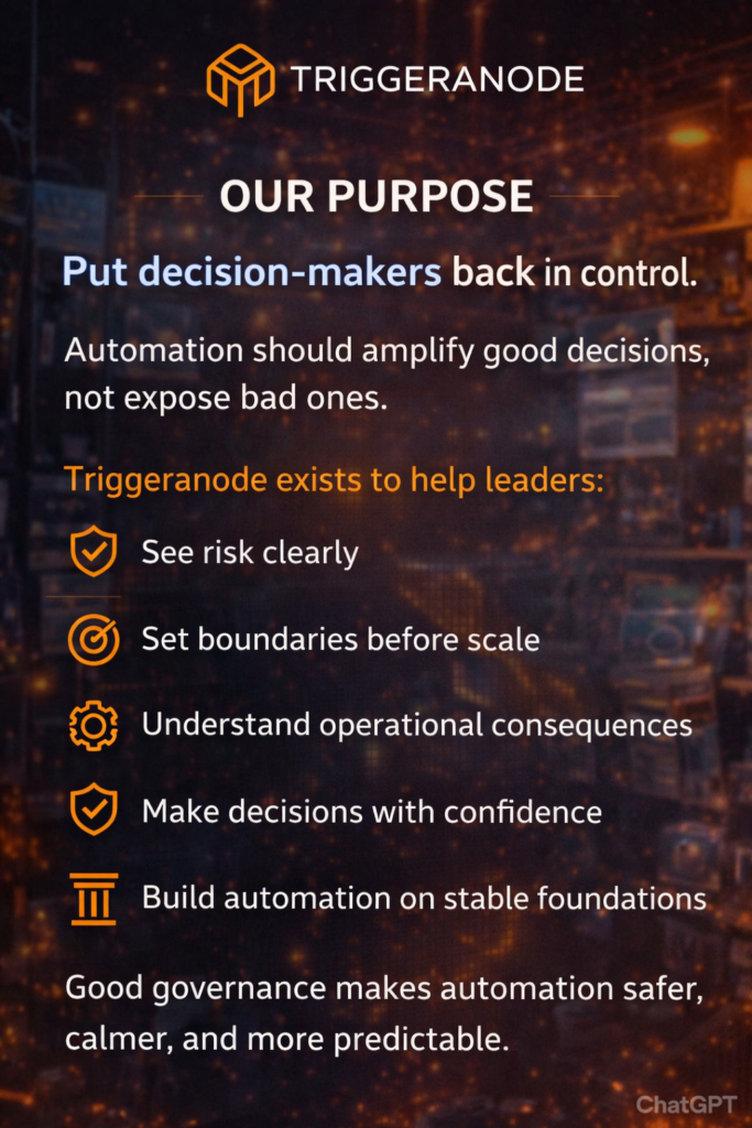 Triggeranode doesn’t replace tools. It ensures that tools can operate safely inside a structure that protects the business.